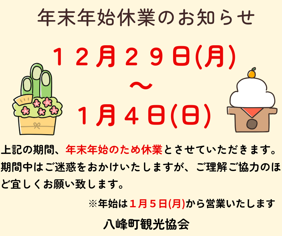 年末年始休業のお知らせ