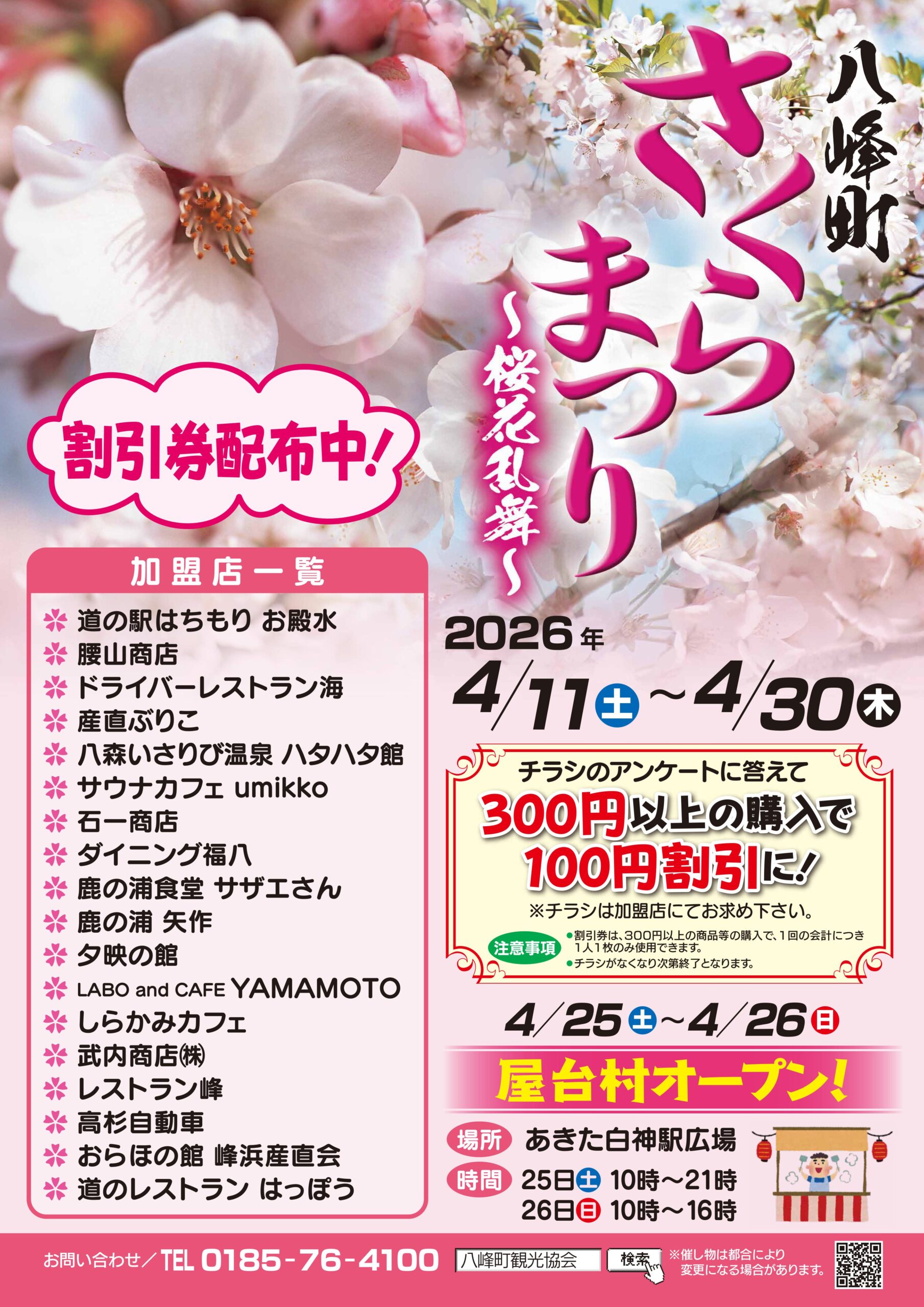 毎年好評いただいている八峰町さくらまつりが今年も開催!