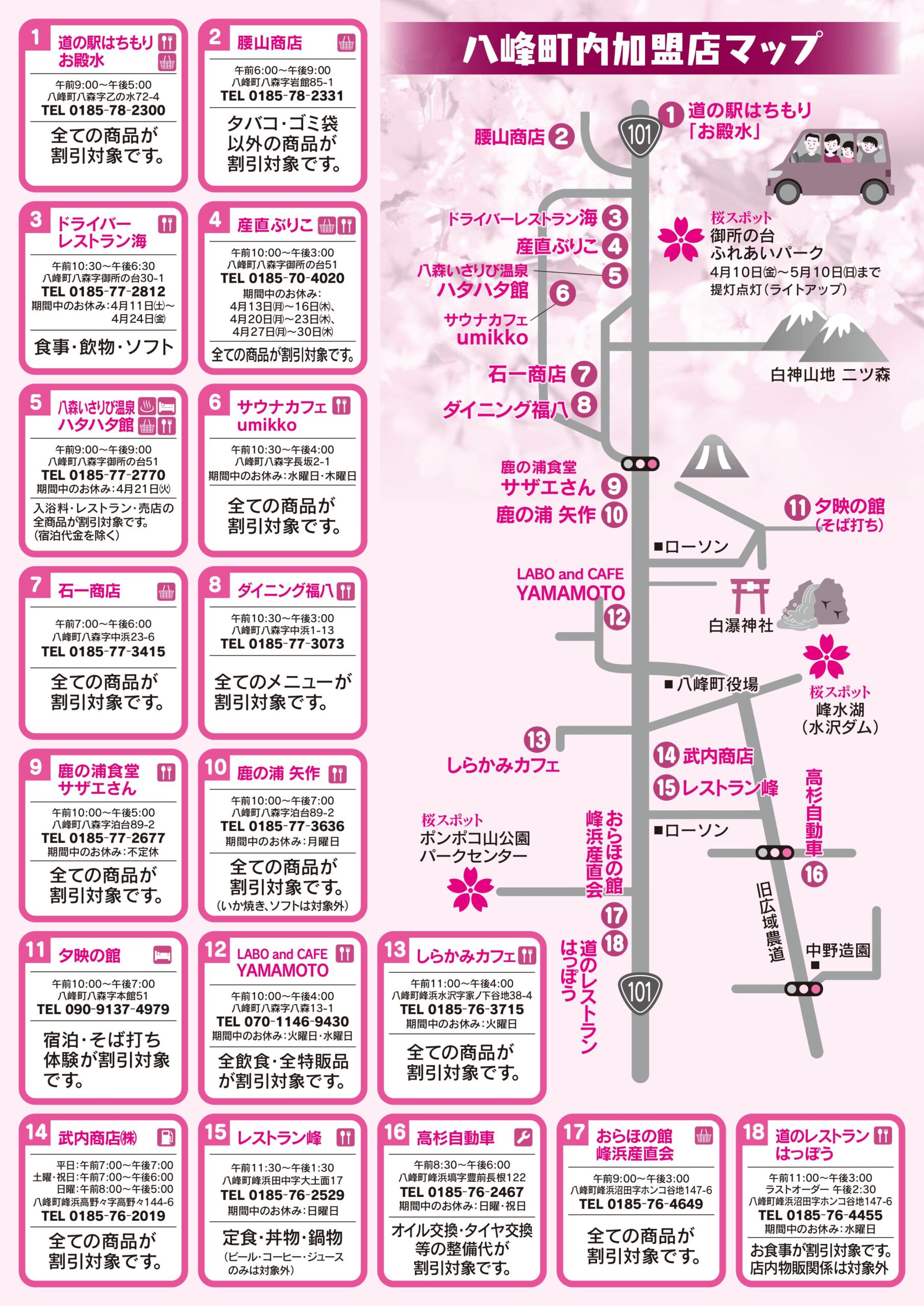 アンケートに答えて八峰町内にある加盟店で使える100円割引券も実施しております。